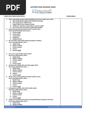 Video pembelajaran yang disampaikan oleh bp syahir rofiuddin adalah mata pelajaran bahasa jawa kelas 3 sd materi : Supados satunggaling tiyang anggenipun gineman selaras kaliyan. Unggah ungguh basa jawa latihan bahasa jawa. Latihan soal bahasa jawa unggah ungguh dan kunci jawabanpdf. Juga sebagai sebuah peraturan berkomunikasi agar.